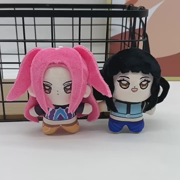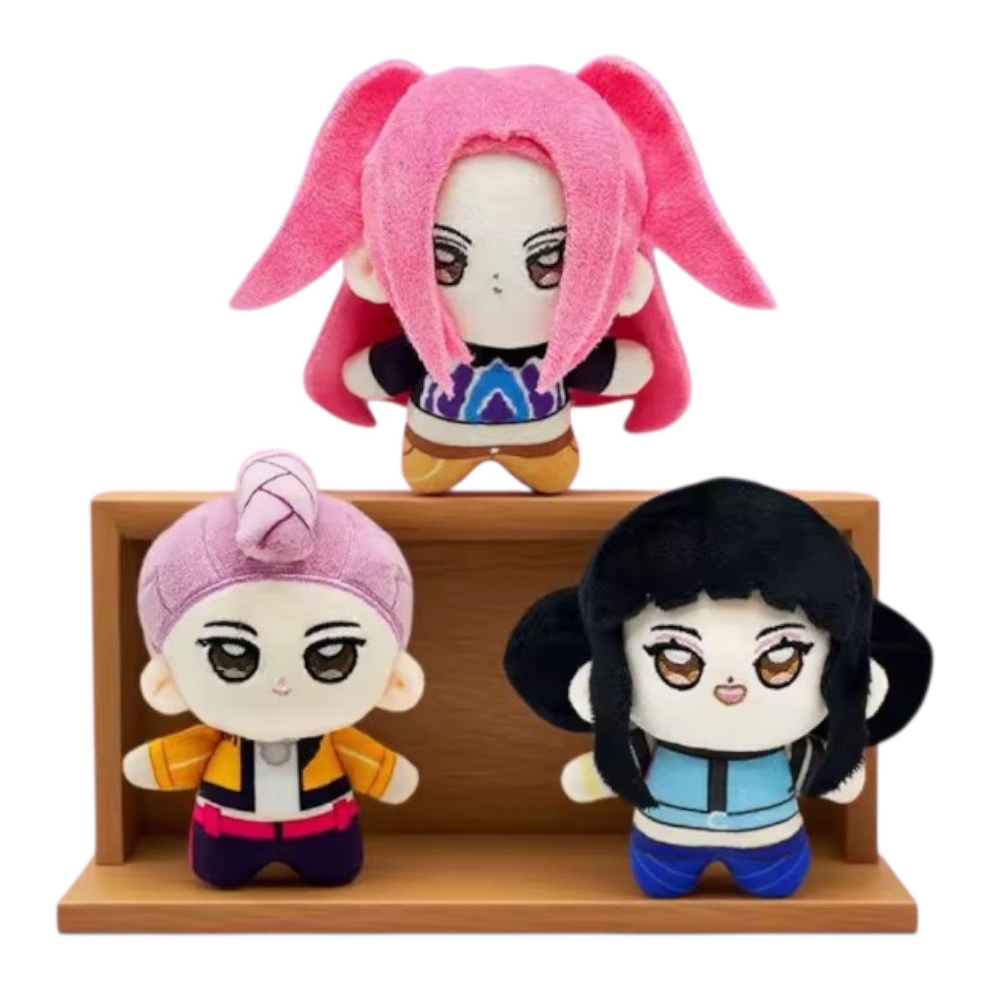 Bring home the magic of your favorite Demon Hunters with these adorable soft collectable plushies! Perfect for collectors, K-pop fans, and anyone who loves the hit movie. Each plush comes with a built-in keychain, so you can hang them on your backpack, purse, or keys and take them with you everywhere you go. Whether you hang them on your backpack, keep them on your desk, or collect them all, these plushies are the perfect way to show off your love for the characters.